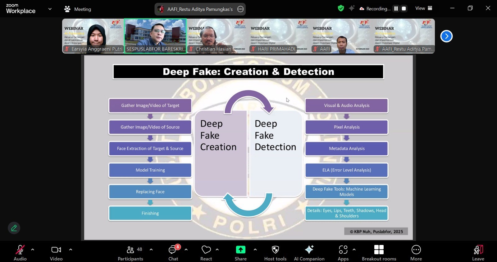24 Feb AAFI YENGGELO Menyelenggarakan Webinar Artificial Intelligence (AI) Forensics: Peluang, Tantangan, dan Implementasi dalam Investigasi Digital Admin Nasional 24 Februari 2025