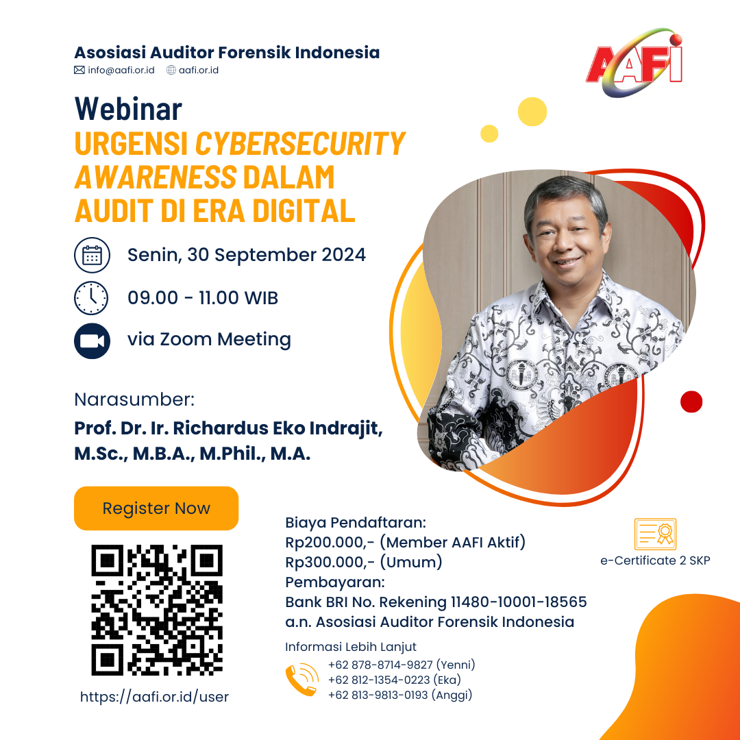 Asosiasi Auditor Forensik Indonesia Yenggelo (AAFI YENGGELO) mengundang Bapak/Ibu dalam Webinar Online dengan Tema: Urgensi Cybersecurity Awareness dalam Audit di Era Digital